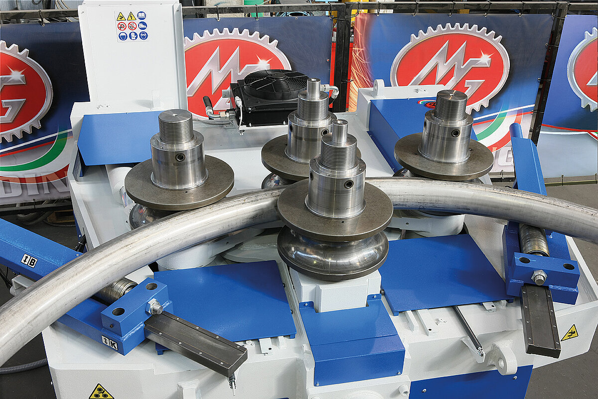 Der lineare 4-Walzen Profilbieger basiert auf einem äußerst robusten, stabilen und wartungsarmen Maschinenkonzept. Die beiden Zentralwalzen (Ober- und Unterwalze) werden direkt über Hydromotoren angetrieben. Gleichzeitig verfügen die Seitenwalzen über einzelne Zustellungen. Auf Basis der hydraulischen 3-Achsen-verfahrbaren Stützvorrichtung lässt sich das Profilmaterial bei dem linearen 4-Walzen Profilbieger sicher zuführen. Die Walzen sind auf 48-55 HRC gehärtet. Alles in allem verfügen Sie mit dem linearen 4-Walzen-Profilbieger über eine langlebige, produktive und wirtschaftliche Profilbiegemaschine.