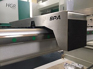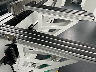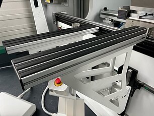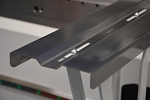 Die Abkantmaschine Hezinger PressLine PRCN ist eine produktive Maschine, die an Ihren Bedarf hinsichtlich Länge, Leistung und Ausstattung angepasst wird. Eine pneumatische Auflage am Hinteranschlag sorgt für das plane Liegen des Blechs. Die vorderen Auflagearme, ca. 500 mm lang, sind frei positionierbar. Optional bietet Ihnen die Abkantmaschine höhenverstellbare Auflagearme mit Mess-Skala, die komplett auf der Linearführung gelagert sind, mit Kugelrollen zur besseren Blechführung.