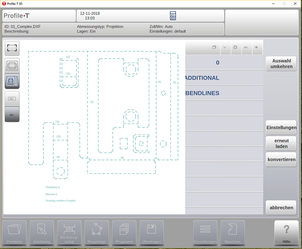 Die Fertigungsvorbereitung, die Machbarkeit- und Werkzeugprüfung kann offline vorgenommen werden. Somit bietet die Profile-T L eine erweiterte Programmierung in 2D/3D ausgerichtet auf die Steuerung DA69T.