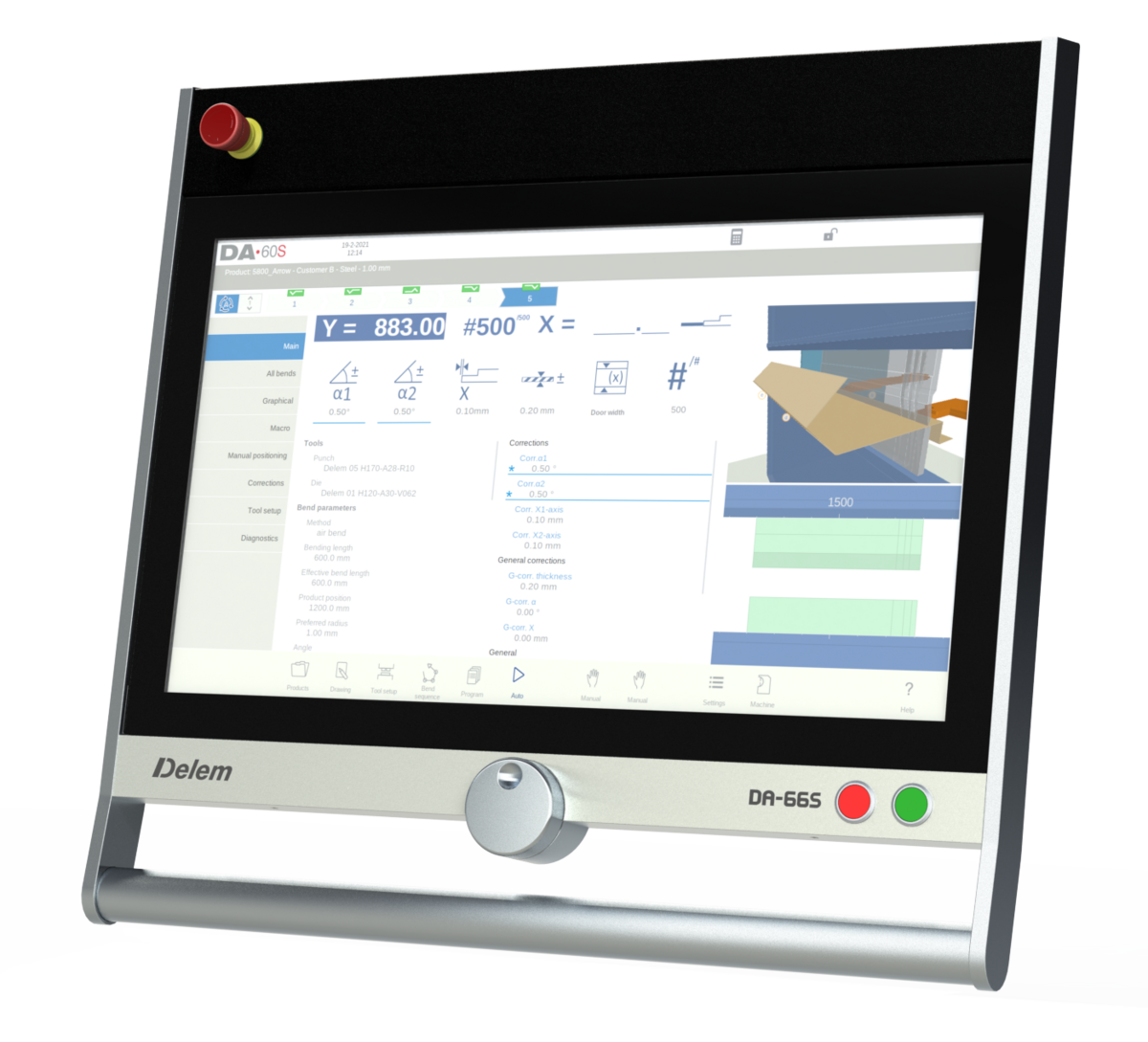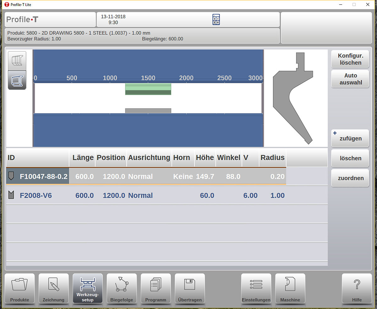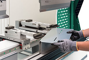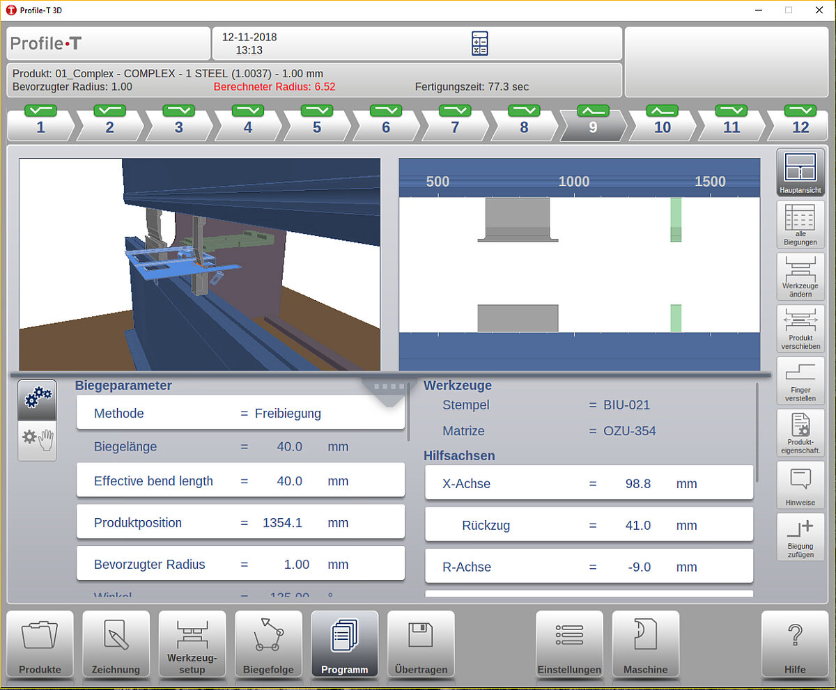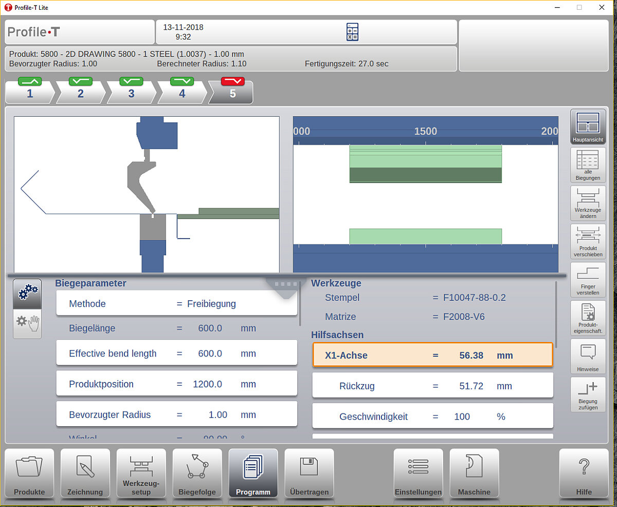 Dank der intuitiven Benutzeroberfläche ist die Bedienung einfach und auch für weniger erfahrene Mitarbeiter geeignet. Funktionen wie Werkzeug-Einrichtung, optimale Biegefolge und Hinteranschlag-Positionierung sorgen für kürzere Bearbeitungszeiten und fehlerfreie Ergebnisse.