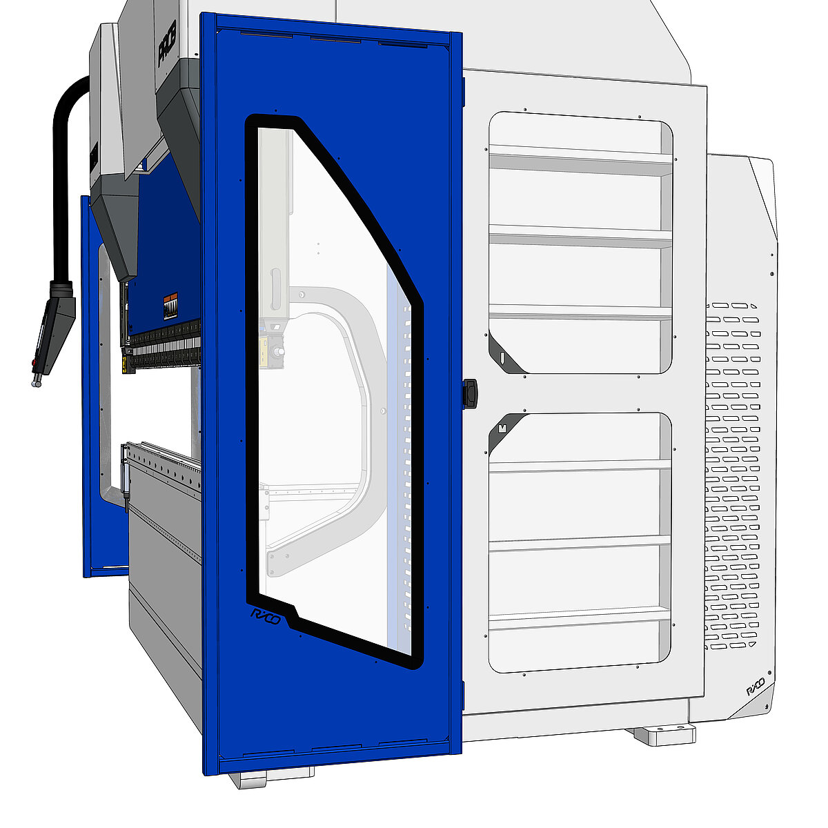 Die Abkantmaschine PRCN bietet eine hochmodernes Bedienerinterface, welches wahlweise über eine 2D/3D CNC-Steuerung abgehängt oder ein fahrbares Bedienpult erfolgt. Diese Steuerungen ermöglicht dem Anwender eine besonders anschauliche und benutzerfreundliche Bedienung. Über das LCD-Farbdisplay des Touch-Screens wird der gesamte Bearbeitungsprozess durch eine 3D-Simulation visualisiert, was die Planung und Durchführung der Biegeprozesse erheblich erleichtert.