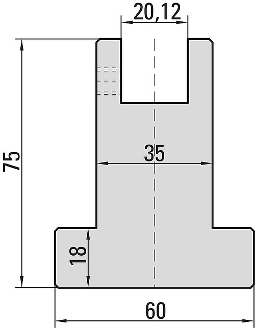 Aufnahme für Kunststoffmatrizen der Serie 32...., H=75mm, B=35mm, L=415mm,