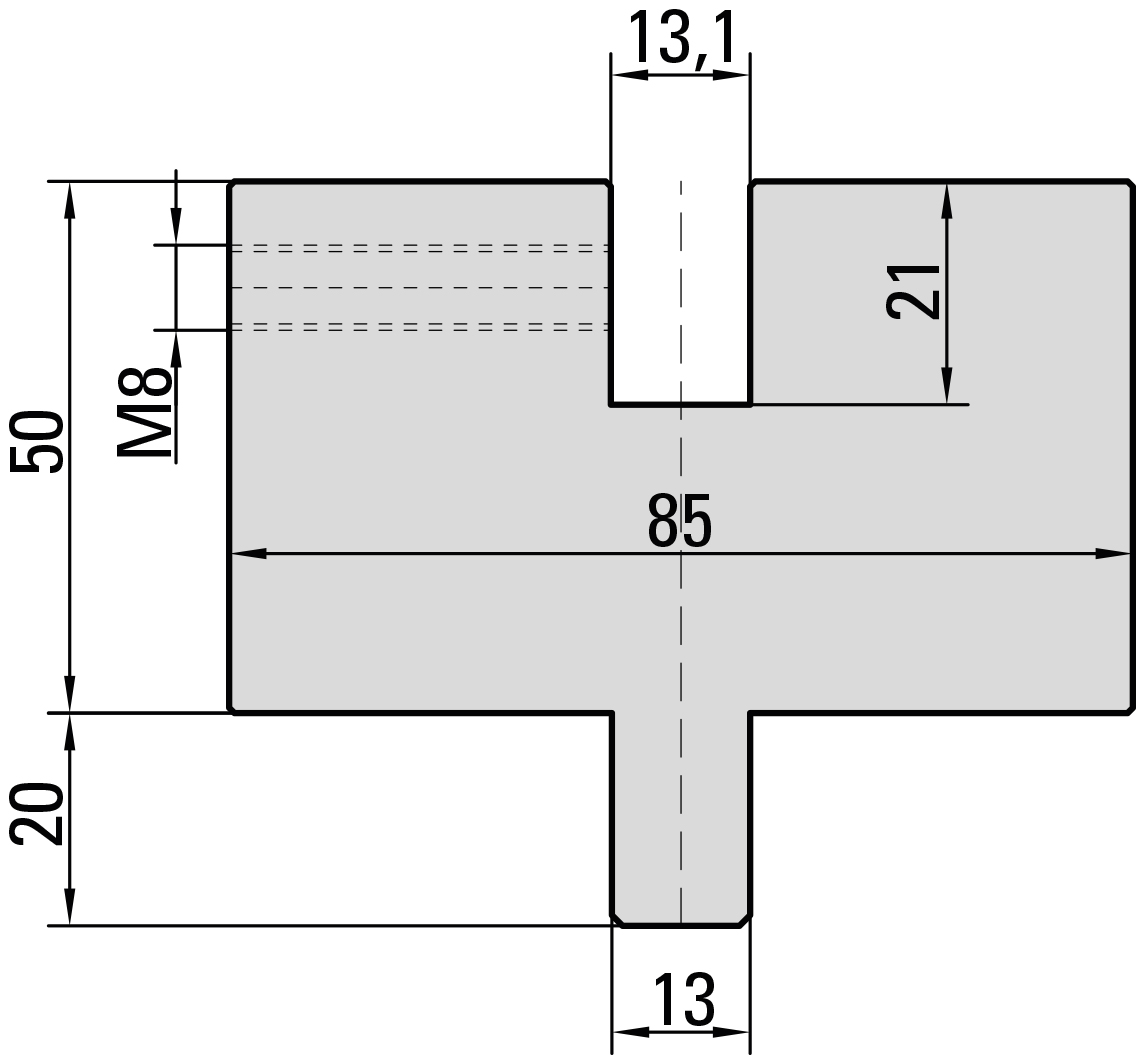Matrizenerhöhung für 13x20mm Aufnahme, H=50mm, B=85mm, L=500mm