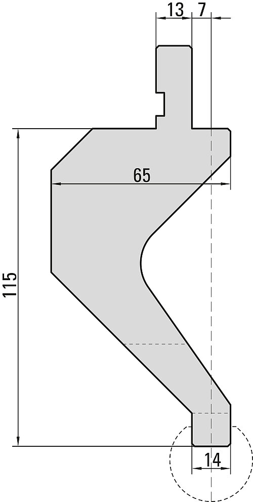 Halter für Radienwerkzeuge R=7,0-50,0mm und Zudrückwerkzeug, H=115mm, B=65mm,