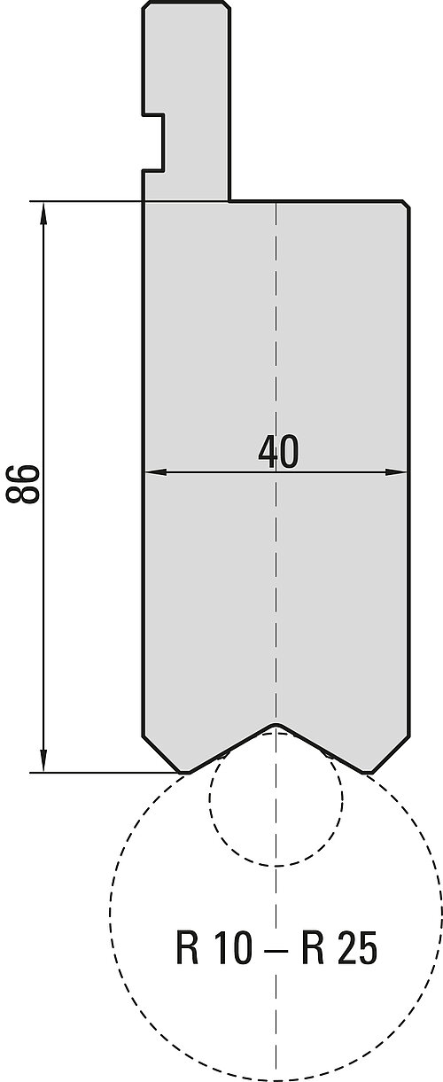 Halter für Radienwerkzeuge R=10,0-25,0mm, H=86mm, B=40mm, L=550mm sektioniert in
