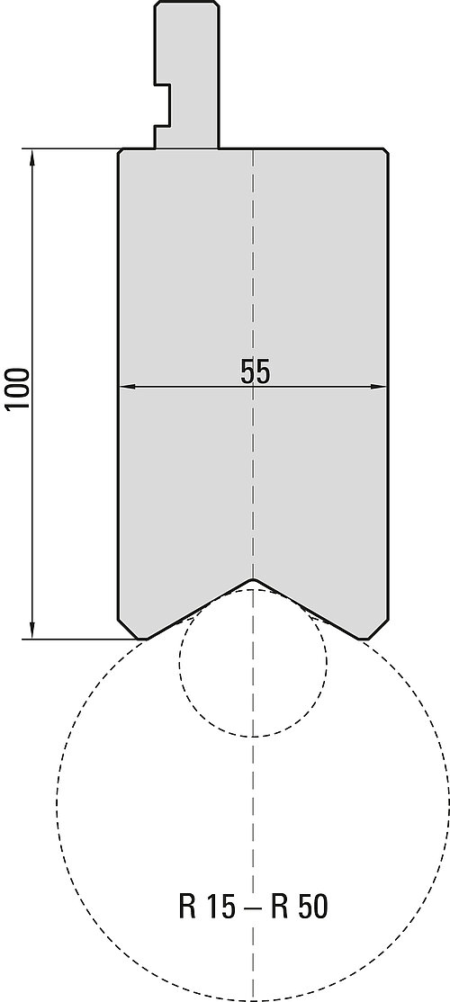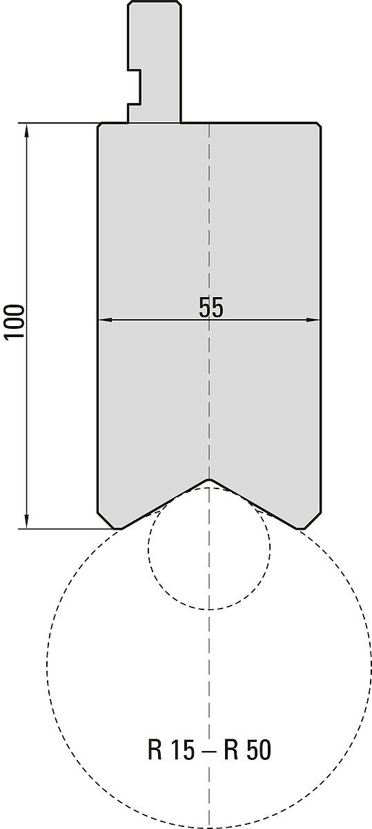 Halter für Radienwerkzeuge R=15,0-50,0mm, H=100mm, B=55mm, L=550mm sektioniert in