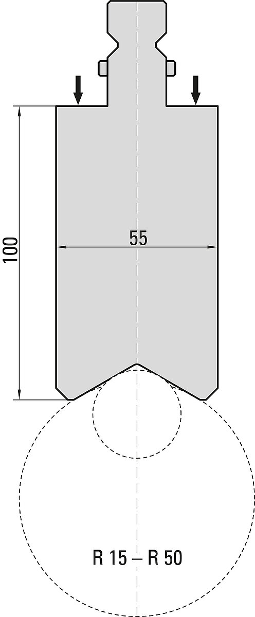 Halter für Radienwerkzeuge R=15,0-50,0mm H=100mm, B=55mm, L=100mm,