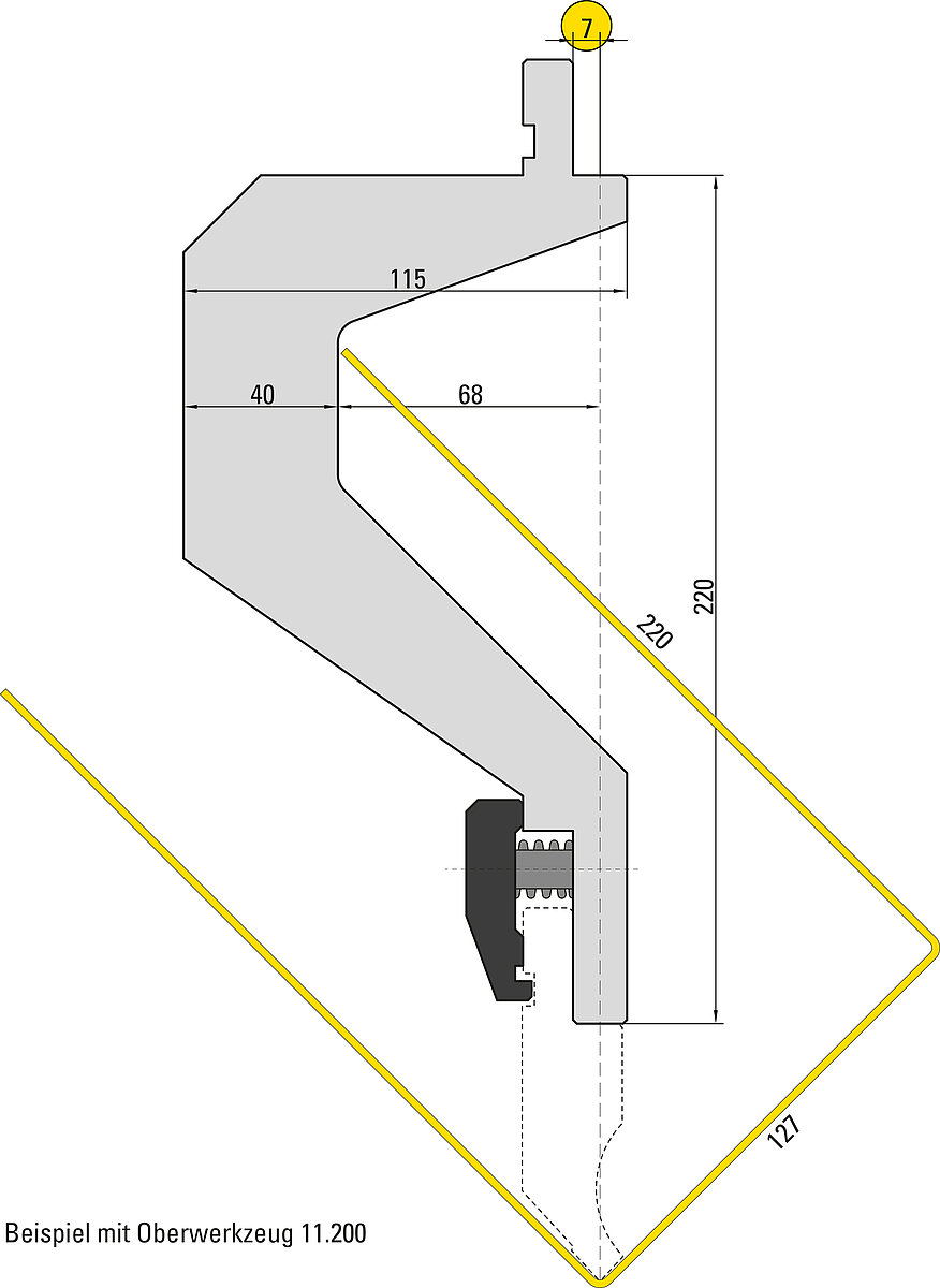 Oberwerkzeugverlängerung, UKB-System Amada, H=220mm, B=115/7mm, L=200mm,