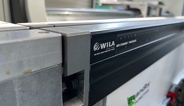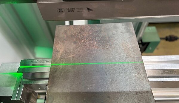 Laserlicht projiziert auf die Biegelinie zum Einmessen nach Anriss