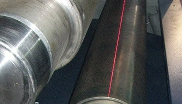 Laser für die rechtwinklige Ausrichtung der eingeführten Bleche