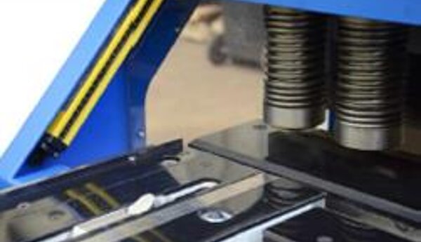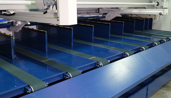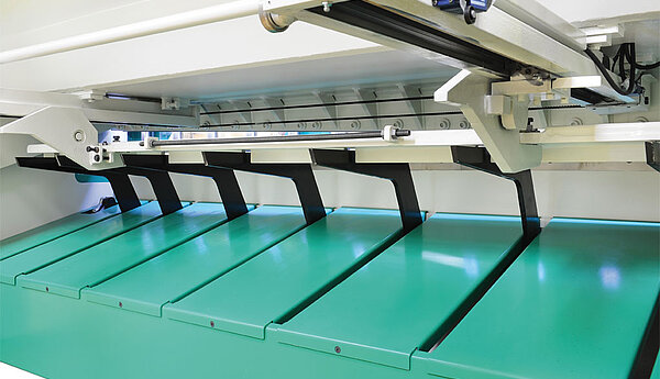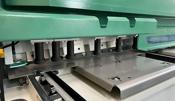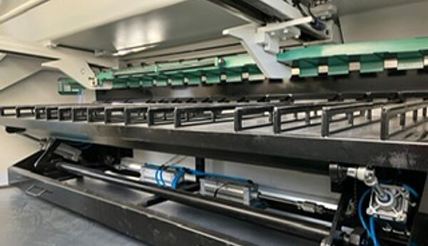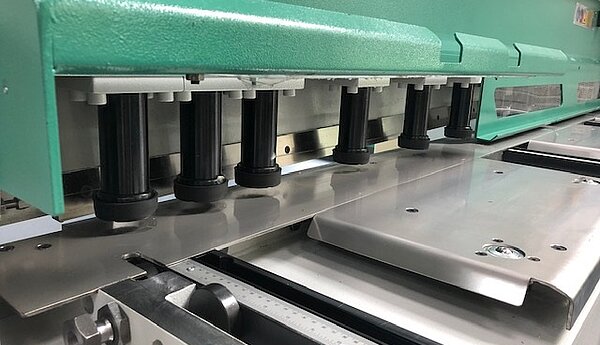 Pneumatische Blechhochhaltung mit Förderband und Schrottweiche