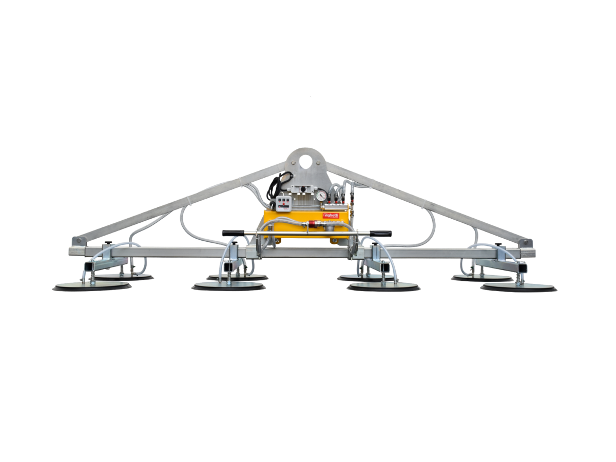 Vakuumheber Modell F08EB2400-4-3000-075 Stromnetzbetriebene Vakuumpumpe mit 2.400 kg Hebeleistung verteilt auf 8 Saugplatten Ø 390 mm