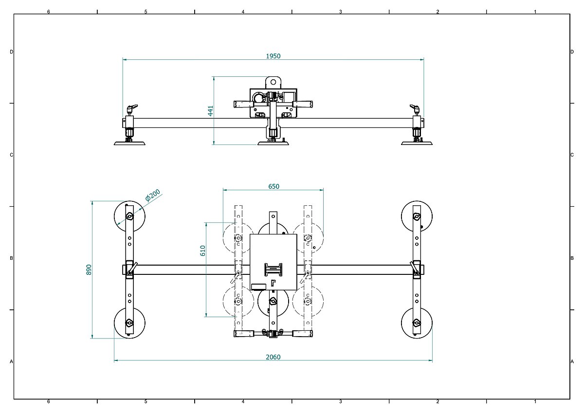 Haupt-Traverse 1.950 mm x 3 Quer-Traversen a 830 mm Verstellbarer Aufnahmebereich von 610 x 650 mm bis 890 x 2.060 mm