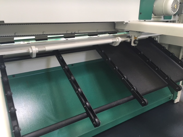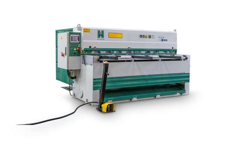 Für die präzise Einmessung des Hinteranschlags und um die Eigendurchbiegung des dünnen Materials zu verhindern, bietet die Hezinger Motorschere ein zuschaltbares pneumatisches System. Dies unterstützt rückseitig die eingelegten Bleche und bietet Ihnen einen präzisen, verwindungsarmen Zuschnitt.