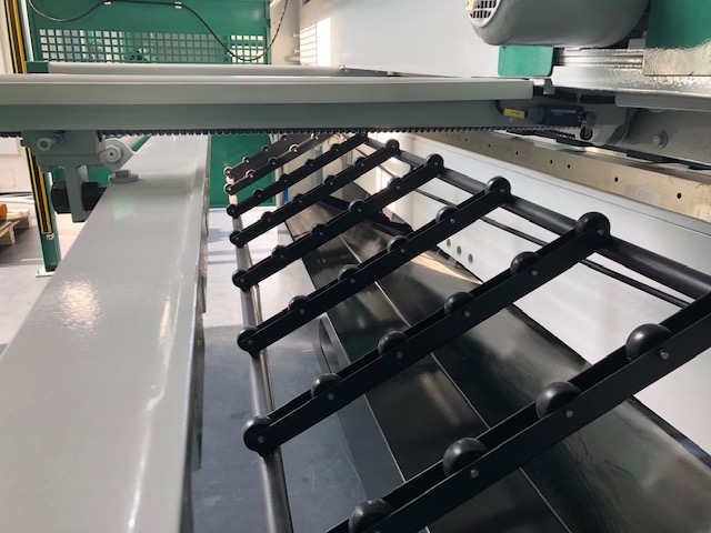 - Abschnitte bis 250 mm fallen auf die Ablege Platte und rutschen nach vorne für eine einfache Entnahme unter dem Schneidtisch