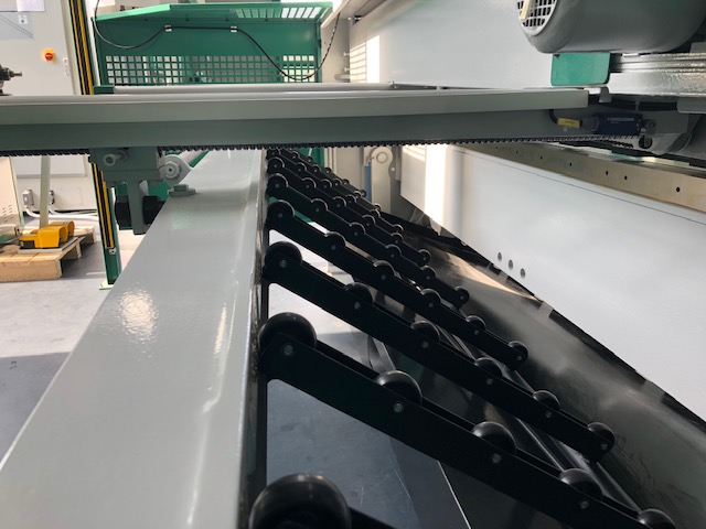 Erweiterung der pneumatischen Blechhochhaltung durch einer Ablege Platte nach vorne und umschaltbarem Ablegen nach vorne oder hinten.