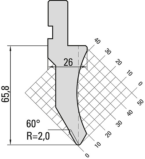 60° Oberwerkzeug, R=2,0mm, H=65,80mm