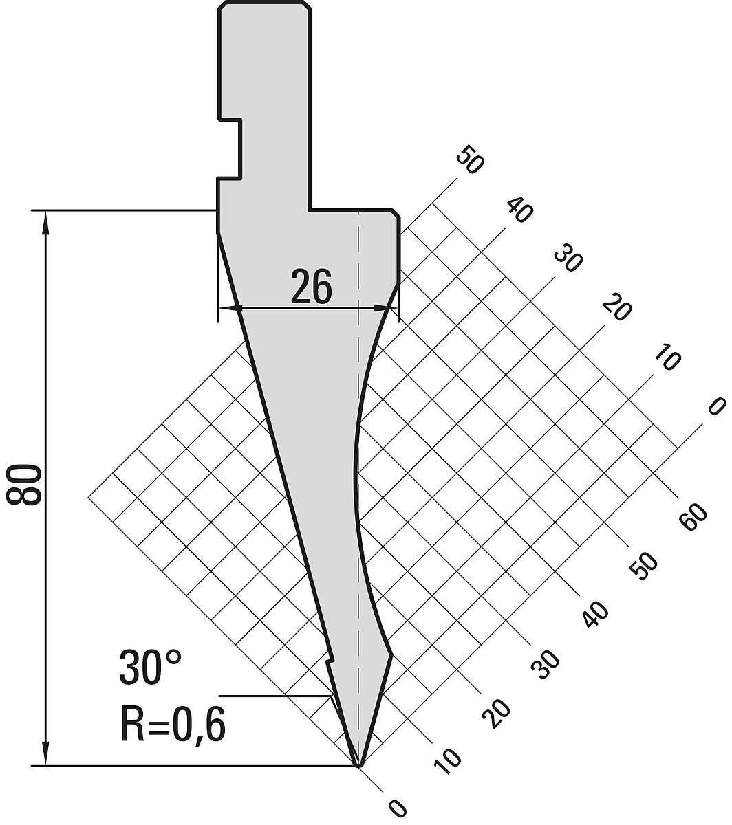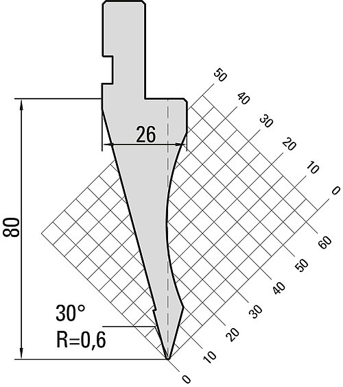 30° Oberwerkzeug, R=0,6mm, H=80mm