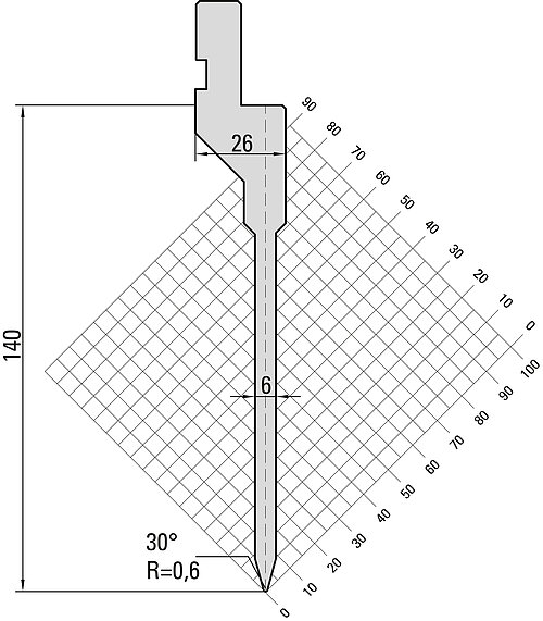 30° Oberwerkzeug, R=0,6mm, H=140mm