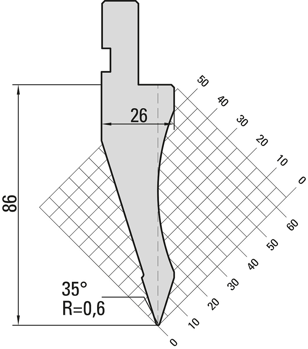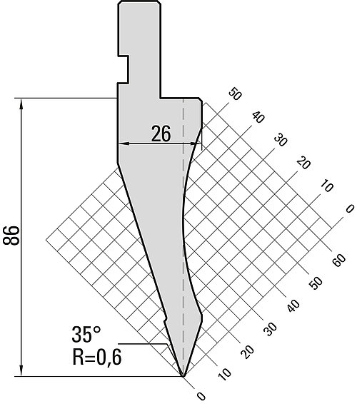 35° Oberwerkzeug, R=0,6mm, H=86mm
