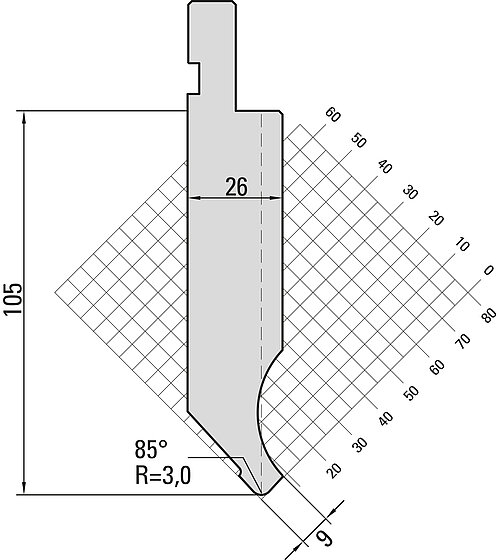 85° Oberwerkzeug, R=3,0mm, H=105mm