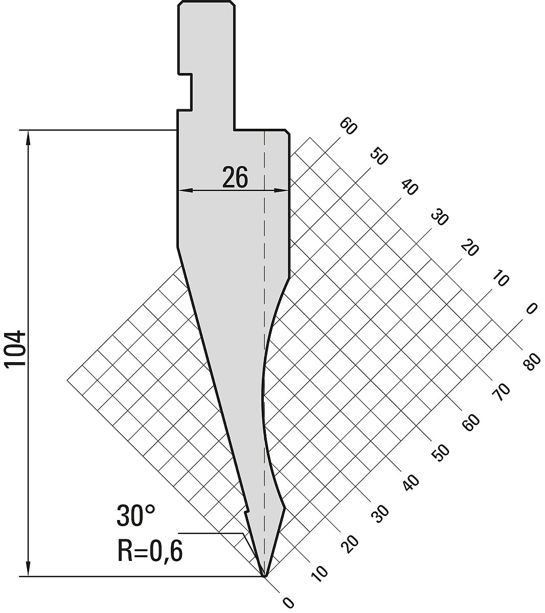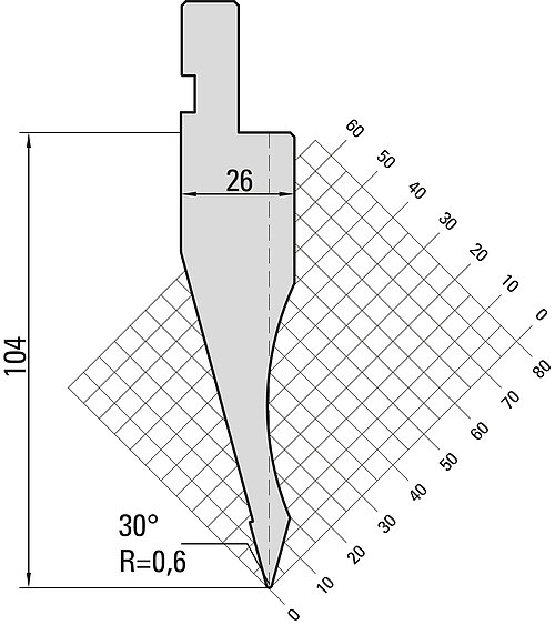 30° Oberwerkzeug, R=0,6mm, H=104mm