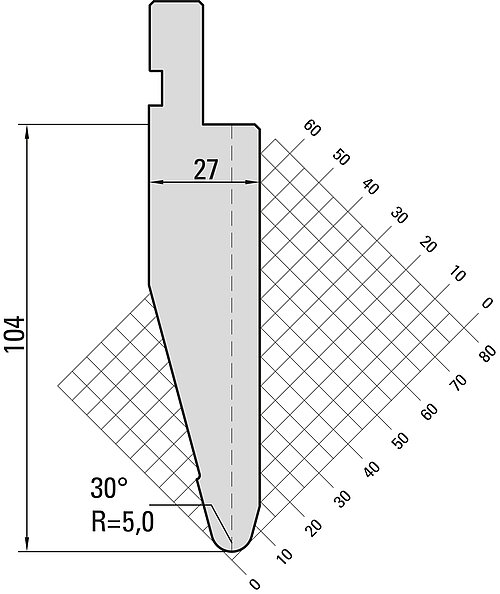 30° Oberwerkzeug, R=5,0mm, H=104mm, B=27mm, L=415mm, UKB-System Amada