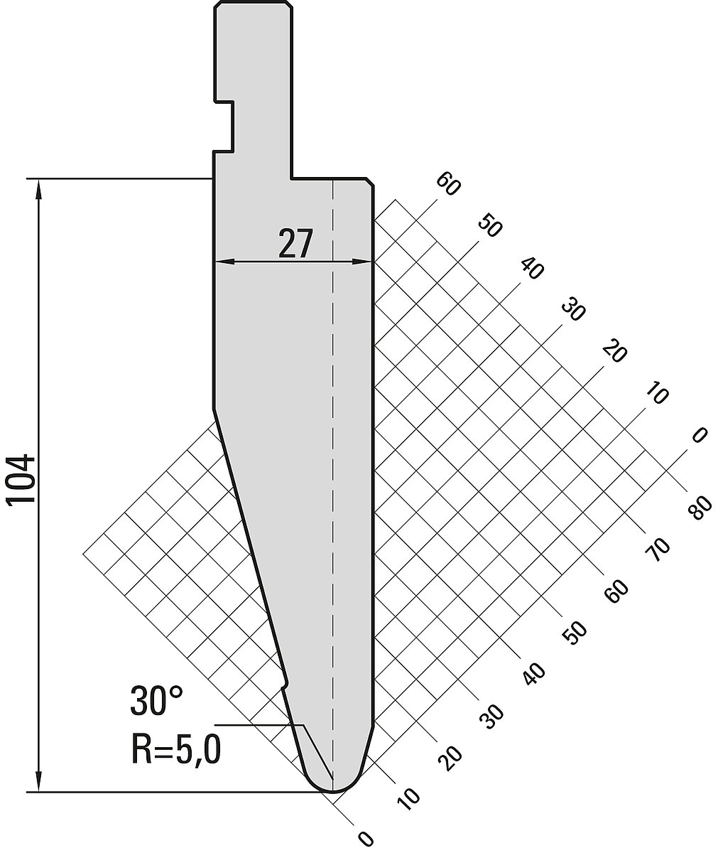 30° Oberwerkzeug, R=5,0mm, H=104mm