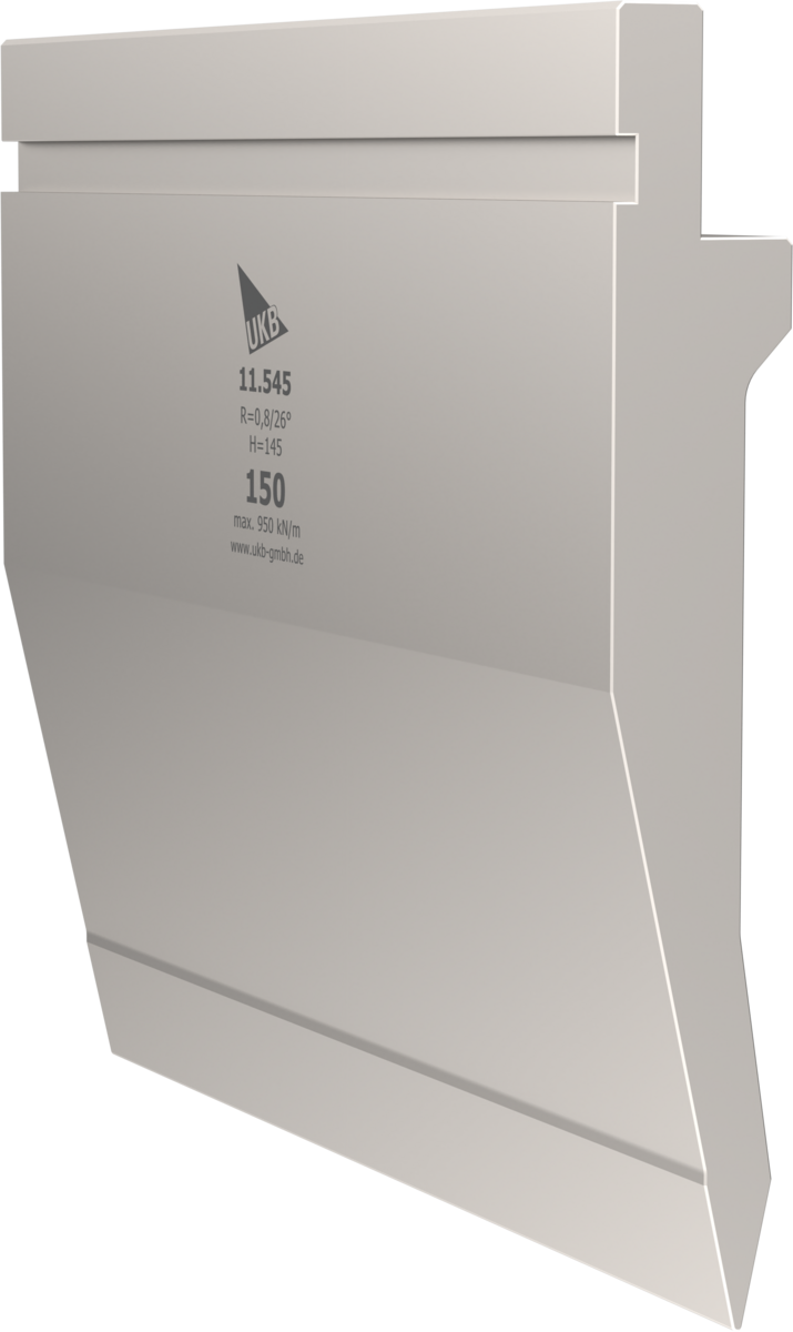 26° Oberwerkzeug, R=0,8mm, H=145mm, B=27mm, L=800mm sektioniert in