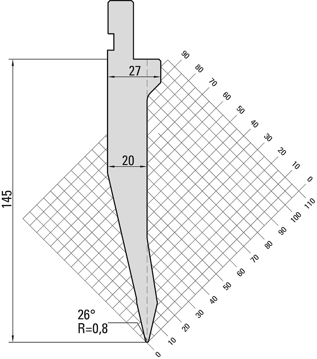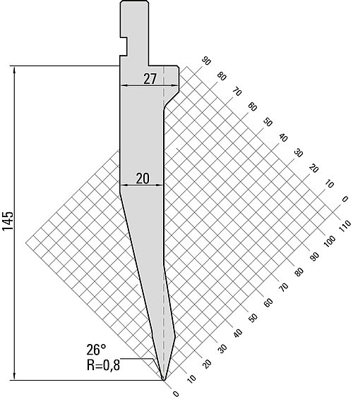 26° Oberwerkzeug, R=0,8mm, H=145mm