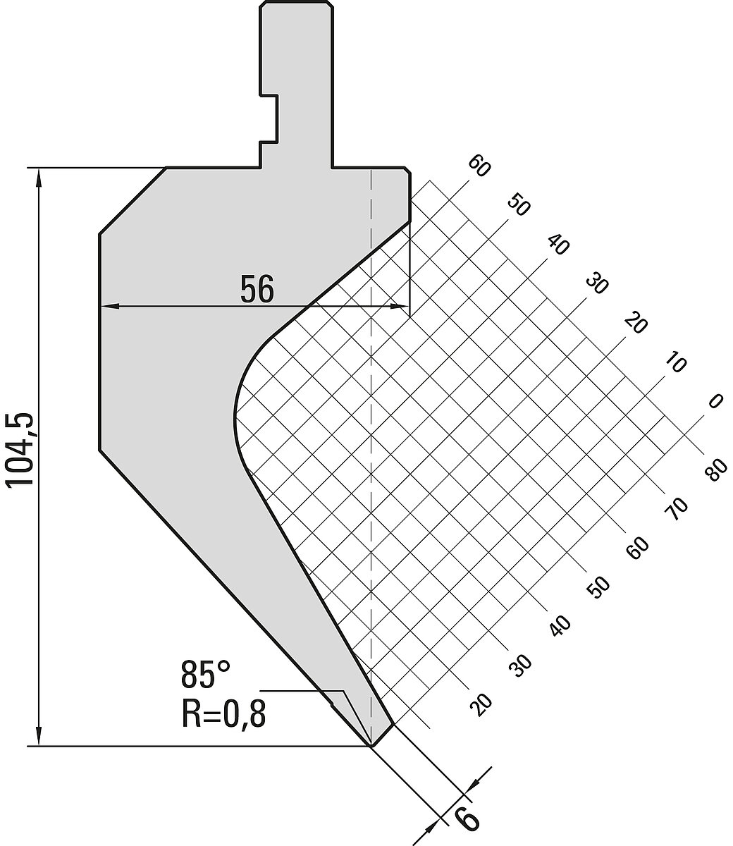 85° Oberwerkzeug, R=0,8mm, H=104,50mm