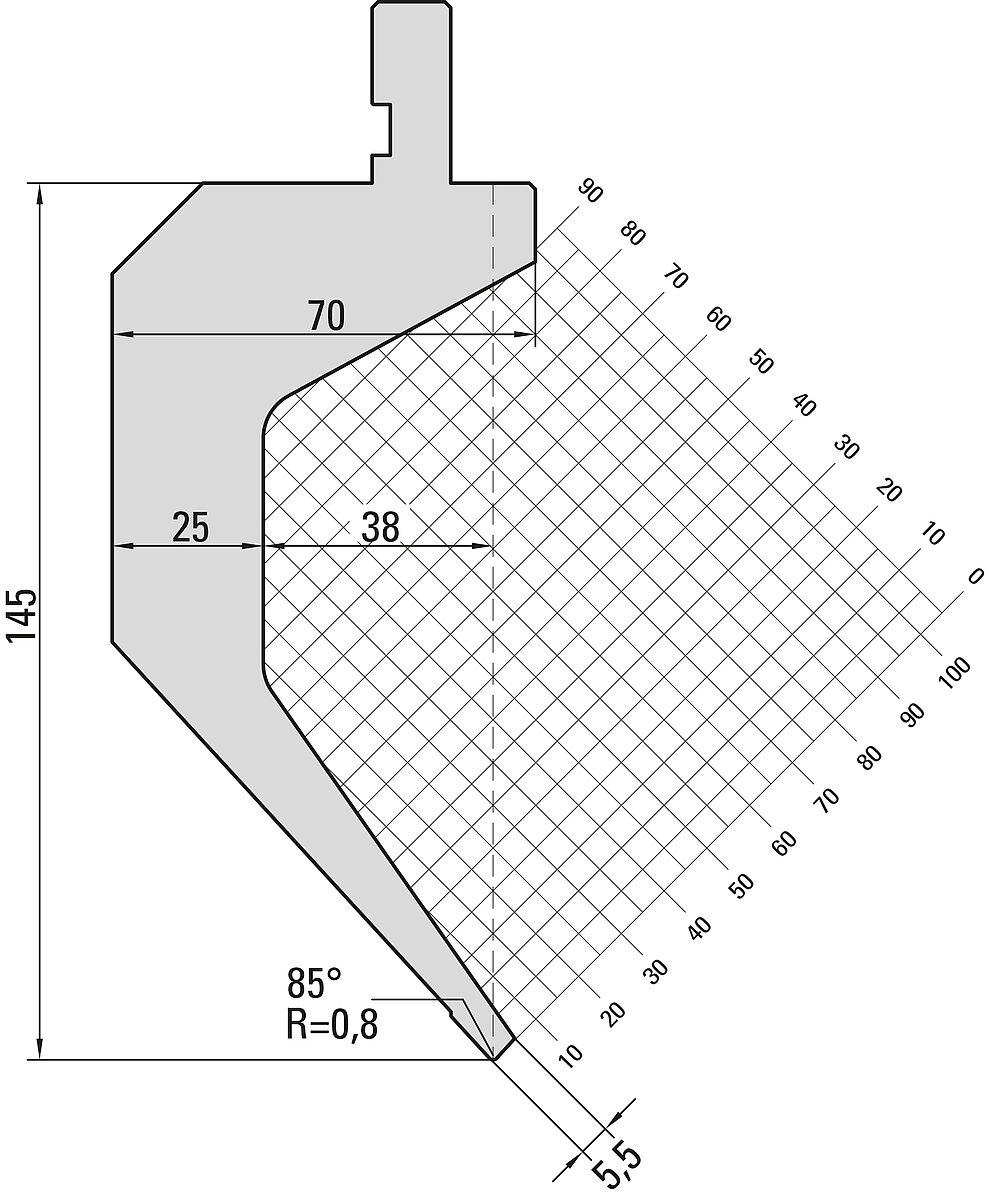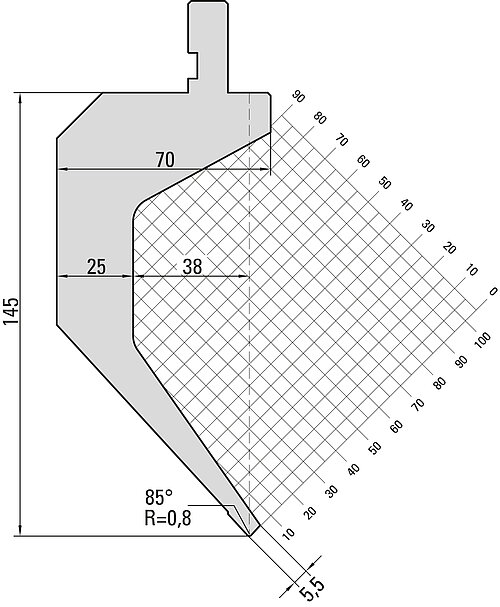 85° Oberwerkzeug, R=0,8mm, H=145mm