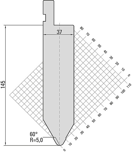 60° Oberwerkzeug, R=5,0mm, H=145mm