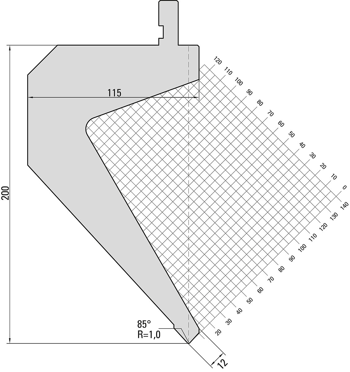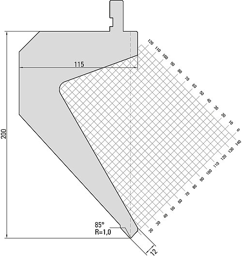 85° Oberwerkzeug, R=1,0mm, H=200mm