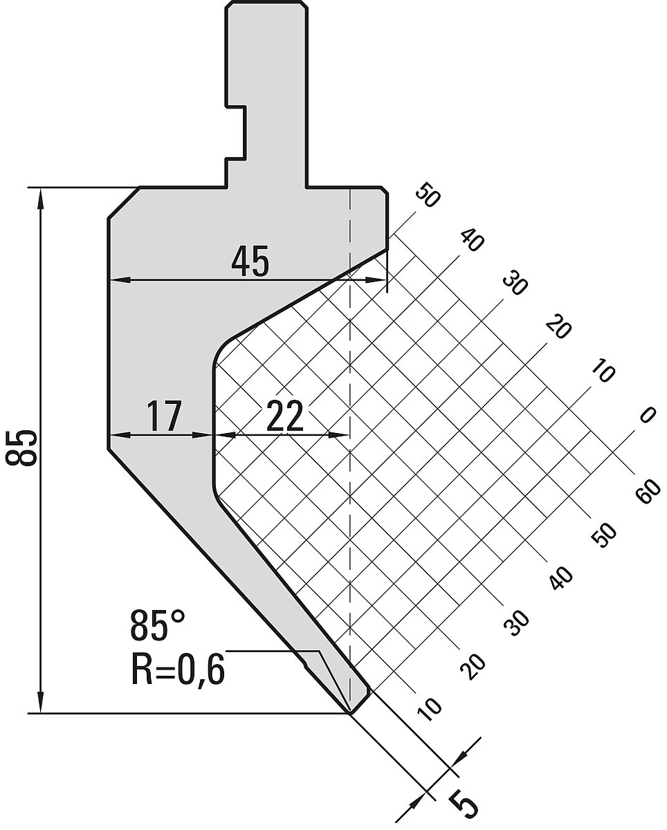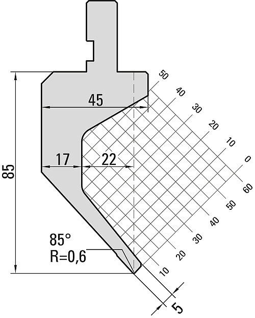 85° Oberwerkzeug, R=0,6mm, H=85mm