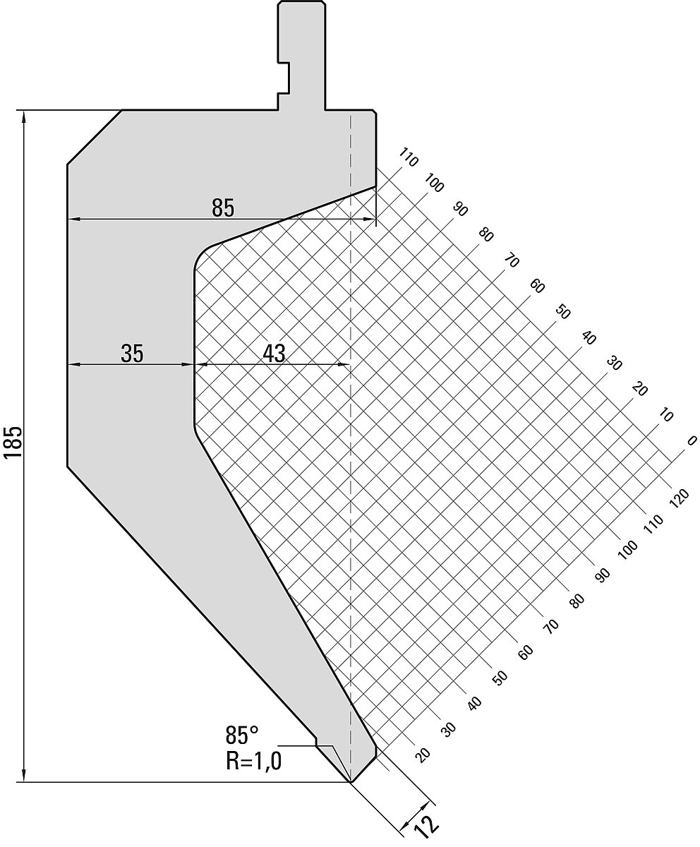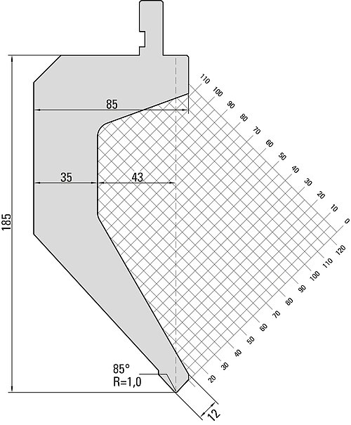 85° Oberwerkzeug, R=1,0mm, H=185mm
