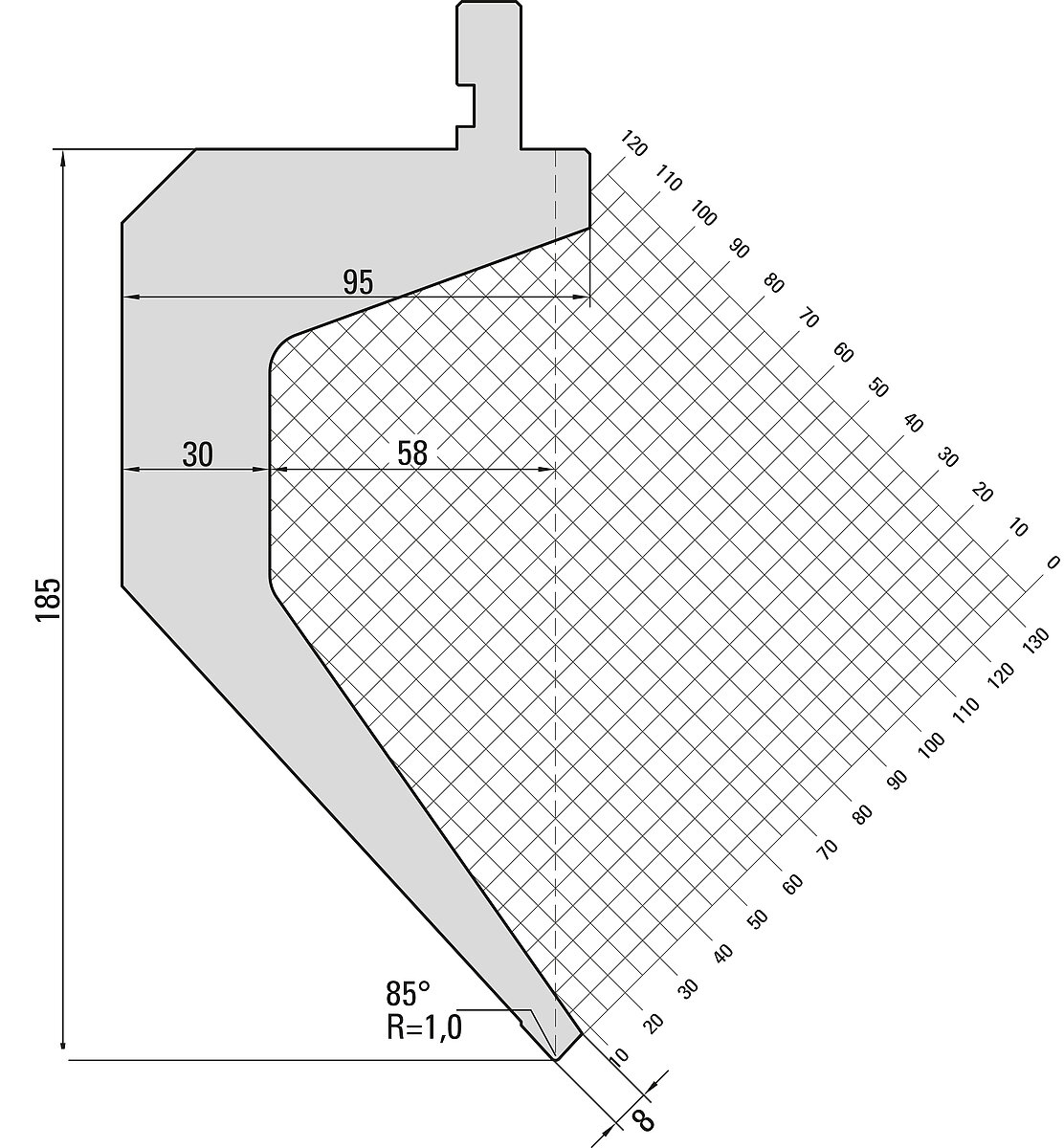 85° Oberwerkzeug, R=1,0mm, H=185mm