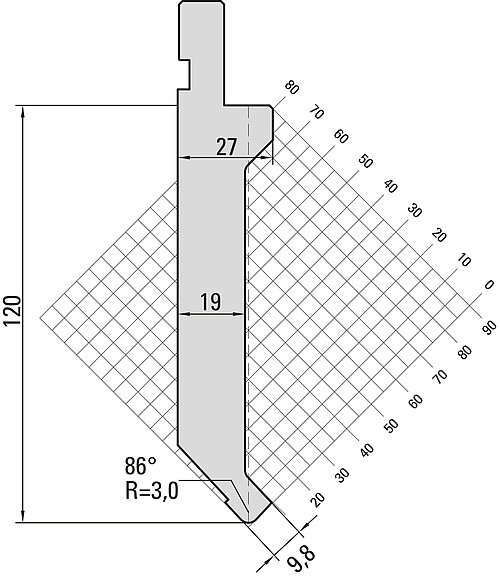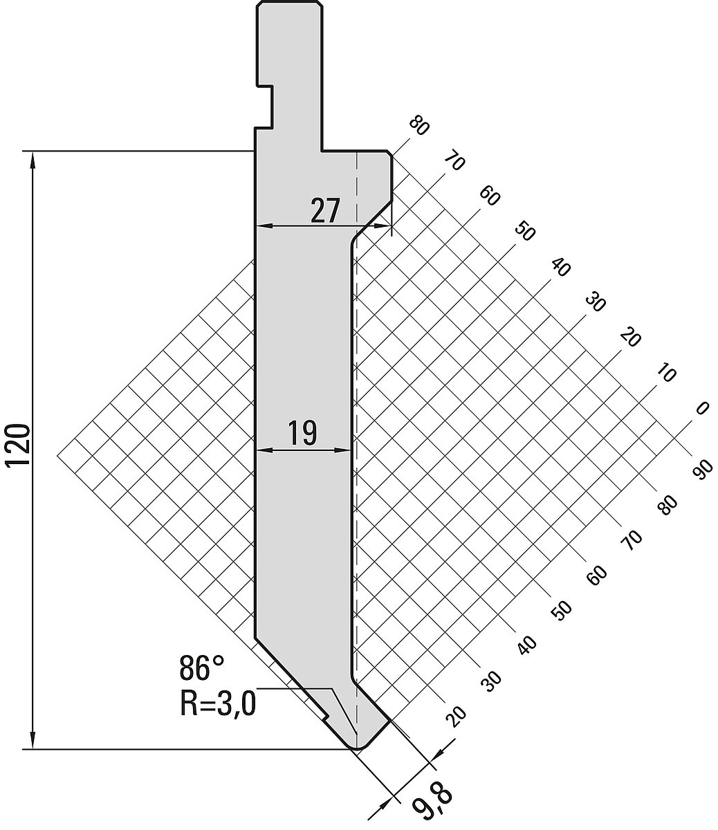 86° Oberwerkzeug "Fixed Height", R=3,0mm, H=120mm, B=27mm, L=835mm,