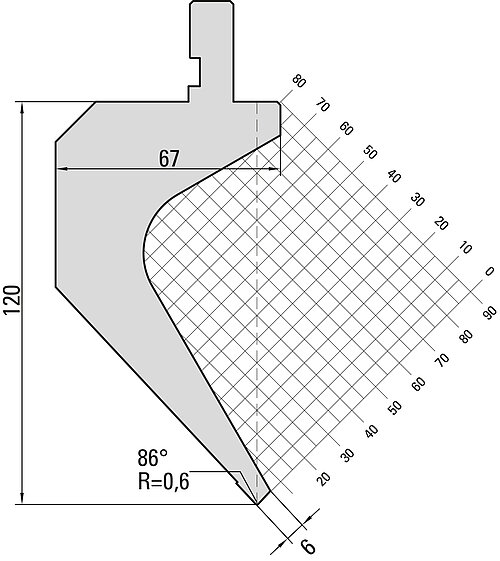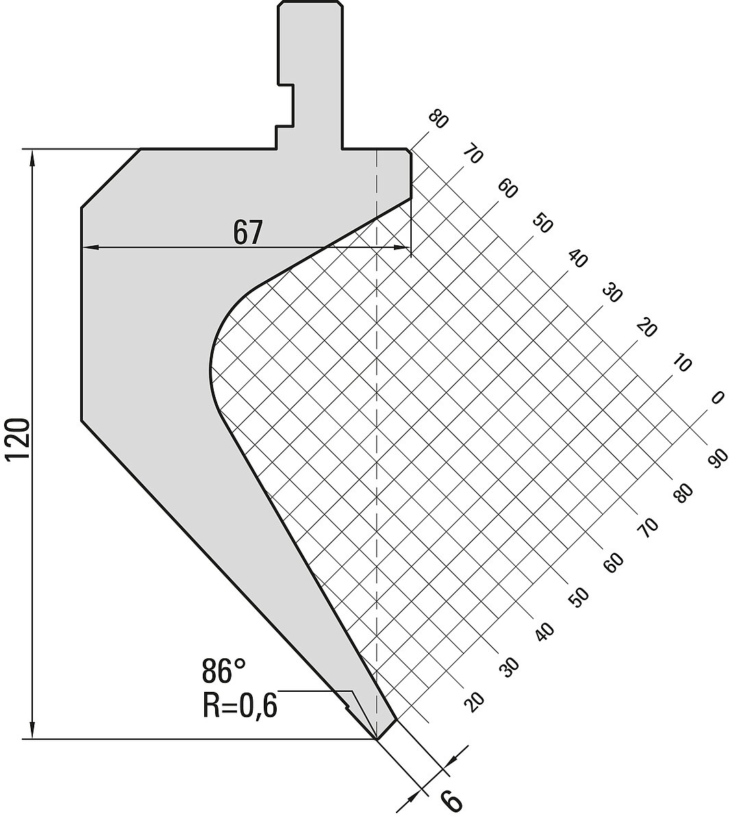 86° Oberwerkzeug "Fixed Height", R=0,6mm, H=120mm, B=67mm, L=415mm,