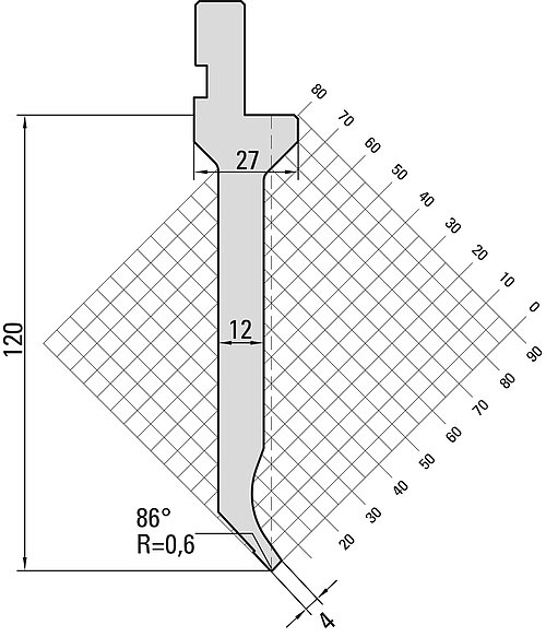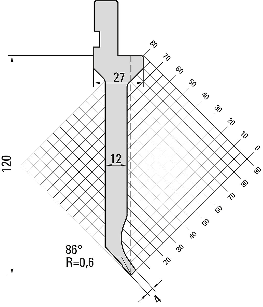 86° Oberwerkzeug "Fixed Height", R=0,6mm, H=120mm, B=27mm, L=415mm,