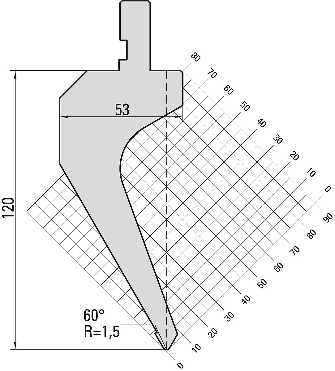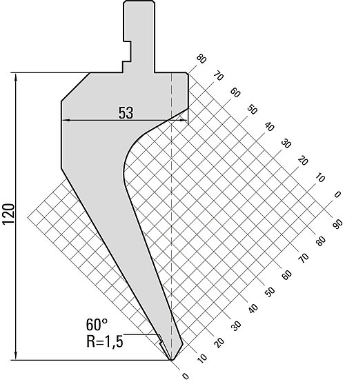 60° Oberwerkzeug "Fixed Height", R=1,5mm