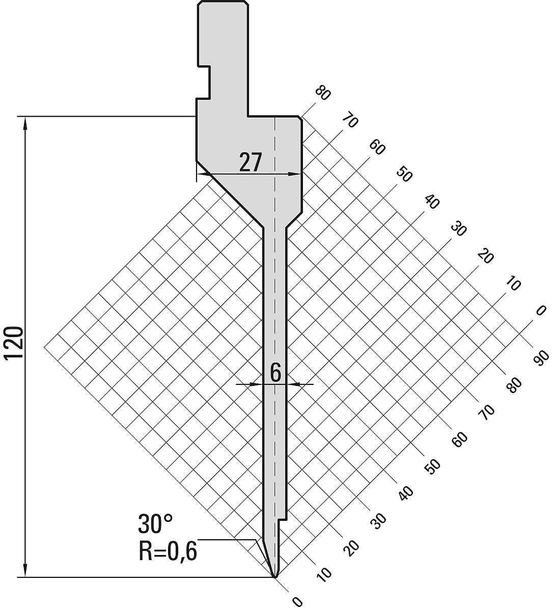 30° Oberwerkzeug "Fixed Height", R=0,6mm, H=120mm, B=27mm, L=415mm,
