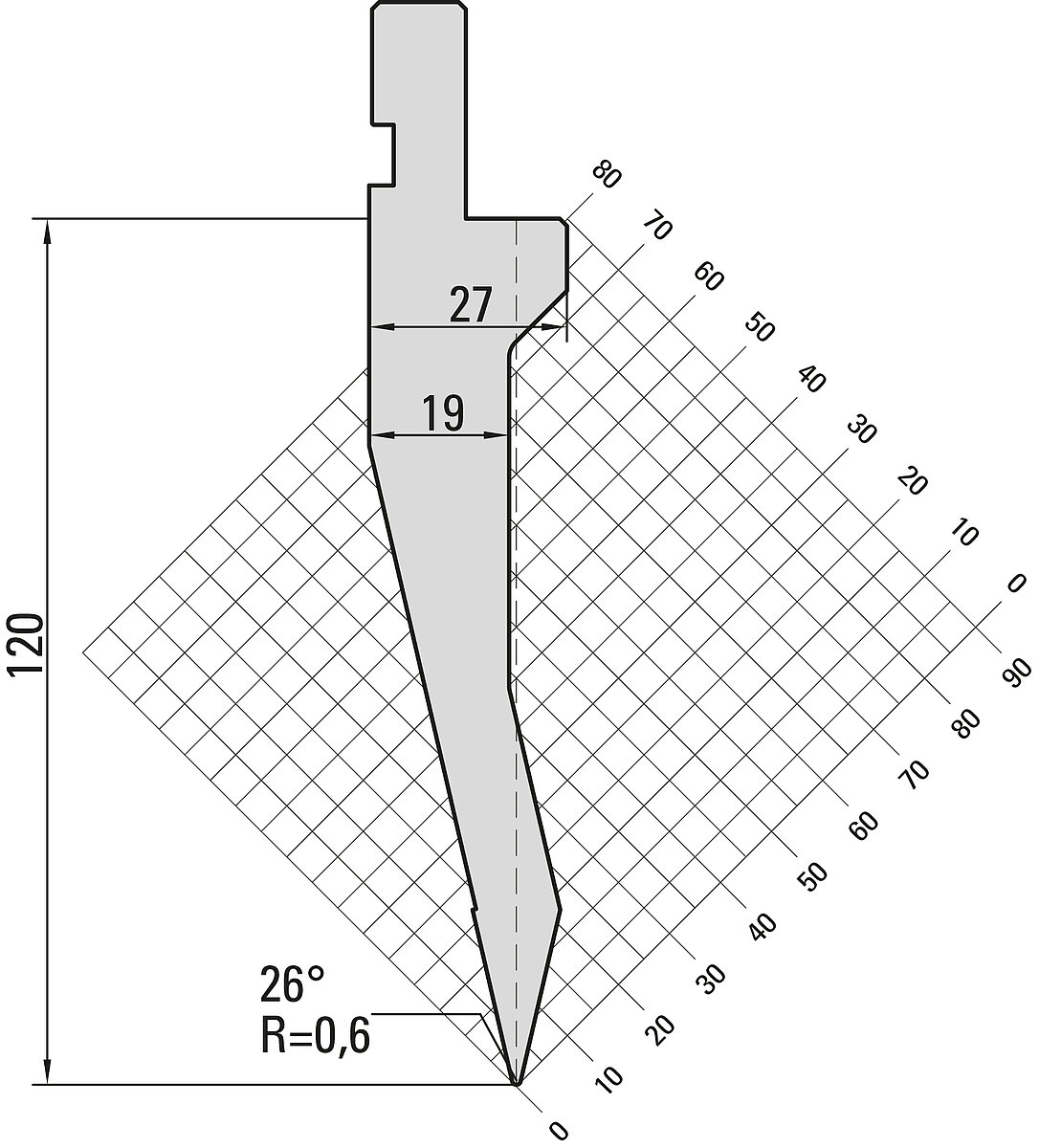 26° Oberwerkzeug "Fixed Height", R=0,6mm