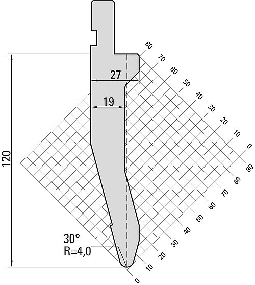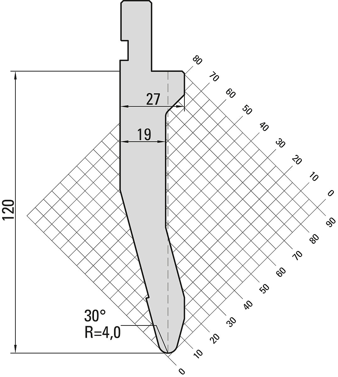 30° Oberwerkzeug "Fixed Height", R=4,0mm, H=120mm, B=27mm, L=835mm,