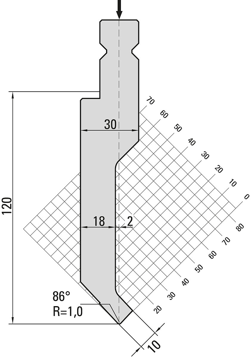 86° Oberwerkzeug, R=1,0mm, H=120mm