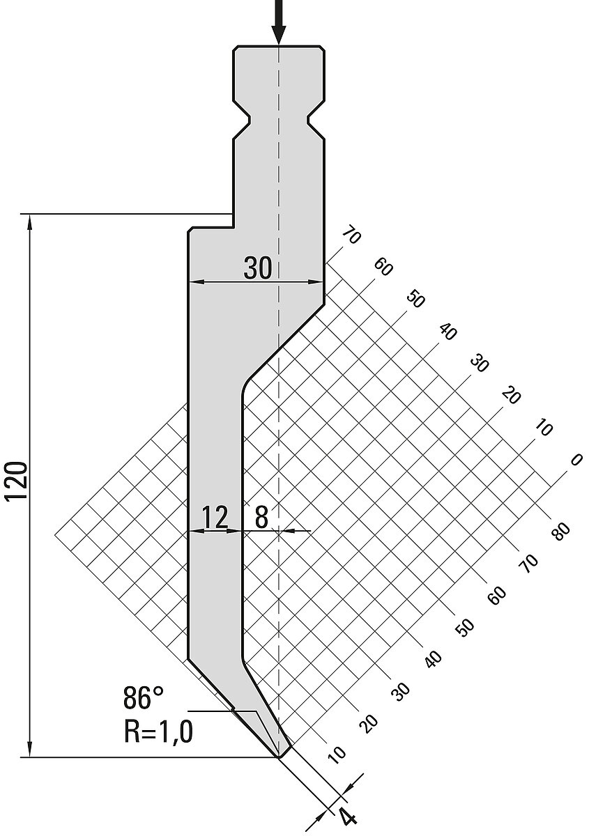 86° Oberwerkzeug, R=1,0mm, H=120mm