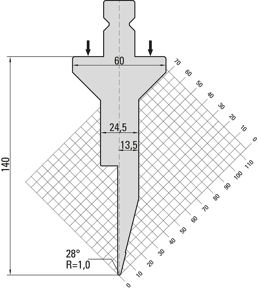 28° Oberwerkzeug, R=1,0mm, H=140mm