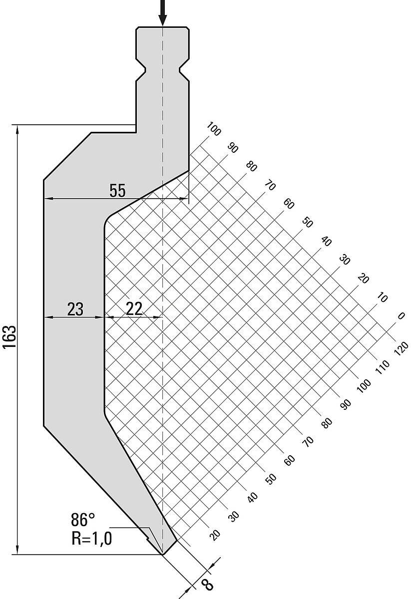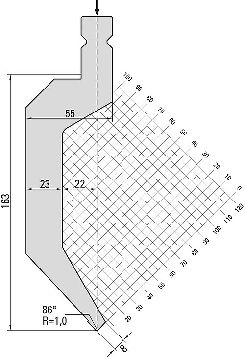 86° Oberwerkzeug, R=1,0mm, H=163mm