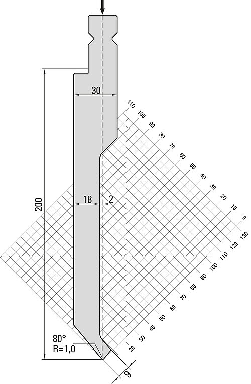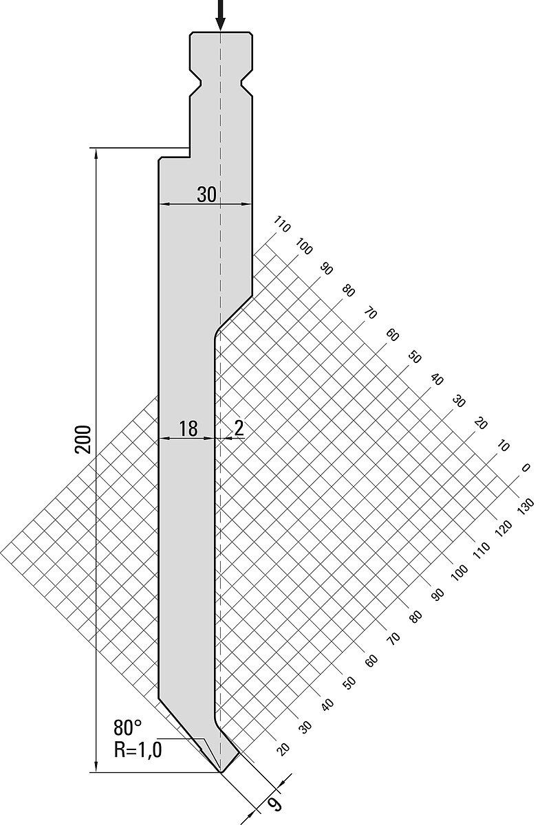 80° Oberwerkzeug, R=1,0mm, H=200mm