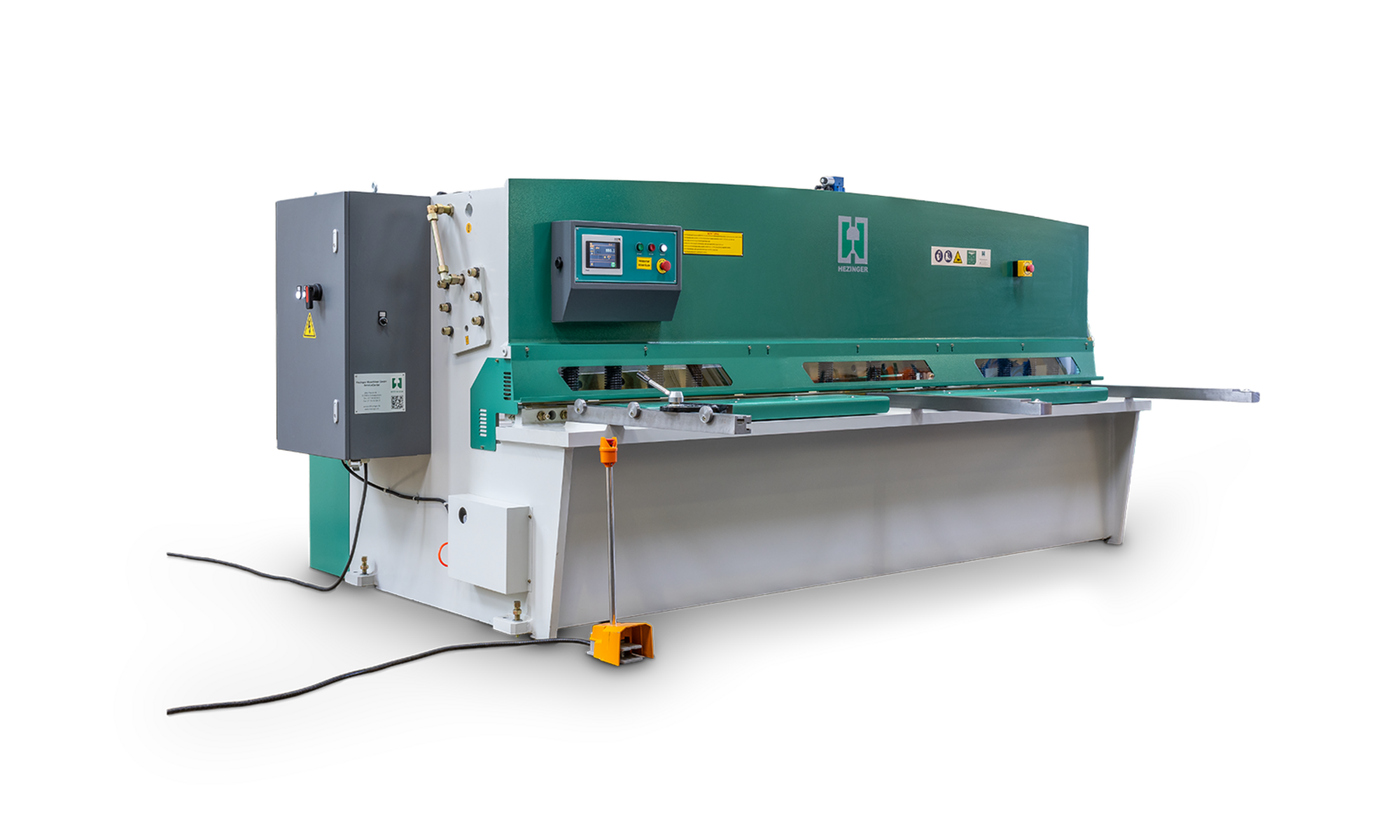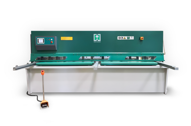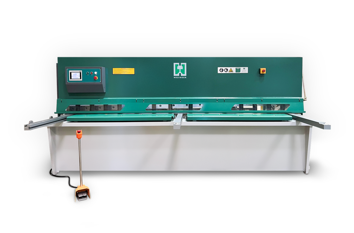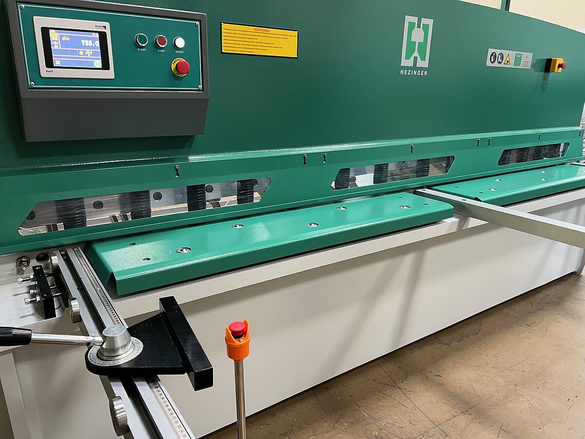 preiswerte Schwingschnitt- Tafelschere BI Die beste Alternative zur gebrauchten Tafelschere: Neumaschine mit Hezinger-Garantie und allen wichtigen Funktionen: Blechhandling vorne und pneumatische Blech-Hochhaltung hinten. Komfortables Arbeiten dank dem motorischen Hinteranschlag mit ELGO-Steuerung - diese stellt auch den Schnittspalt vollautomatisch ein!